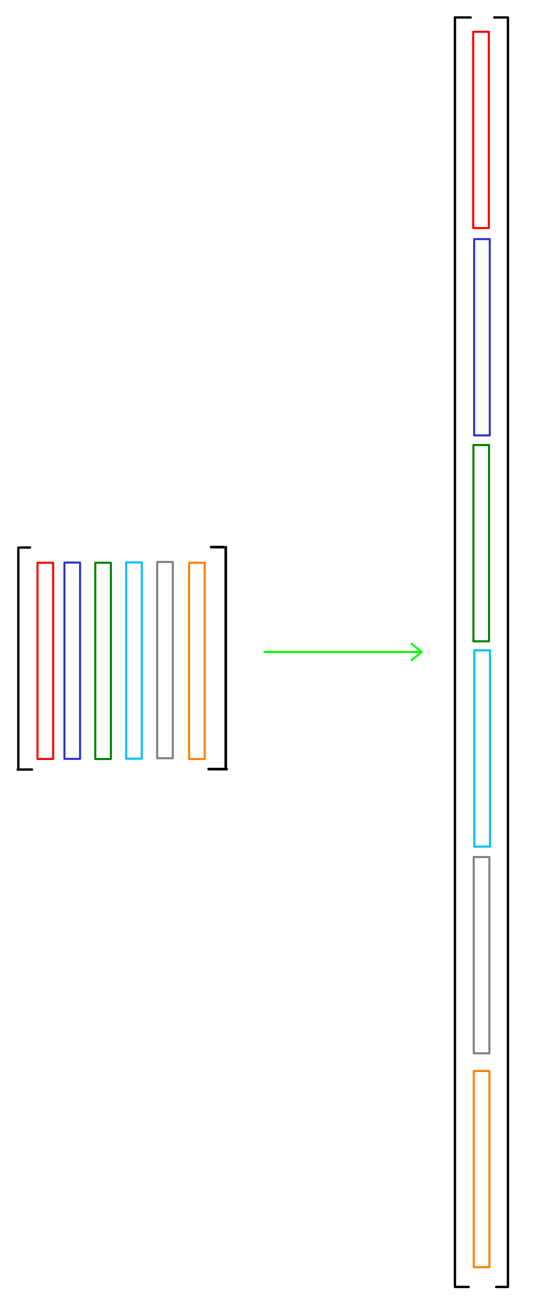 In particular, we want to concatenate the columns of our operators that are defined in matrix form (with ), such that we create a one-dimensional vector with entries, where stands for number of degrees of freedom (see figure).